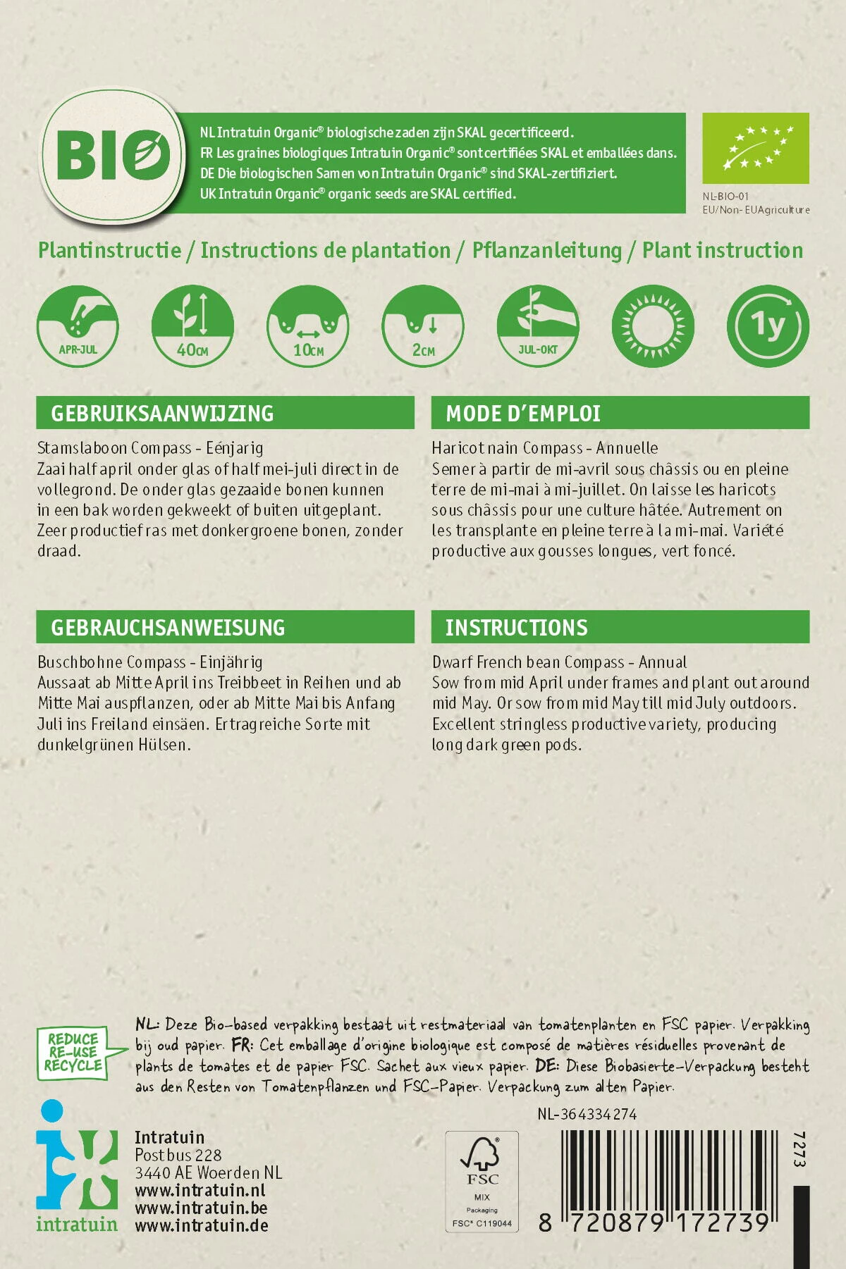 Intratuin Biologisch Groentezaden Stamslaboon (Phaseolus Vulgaris ‘Compas’)