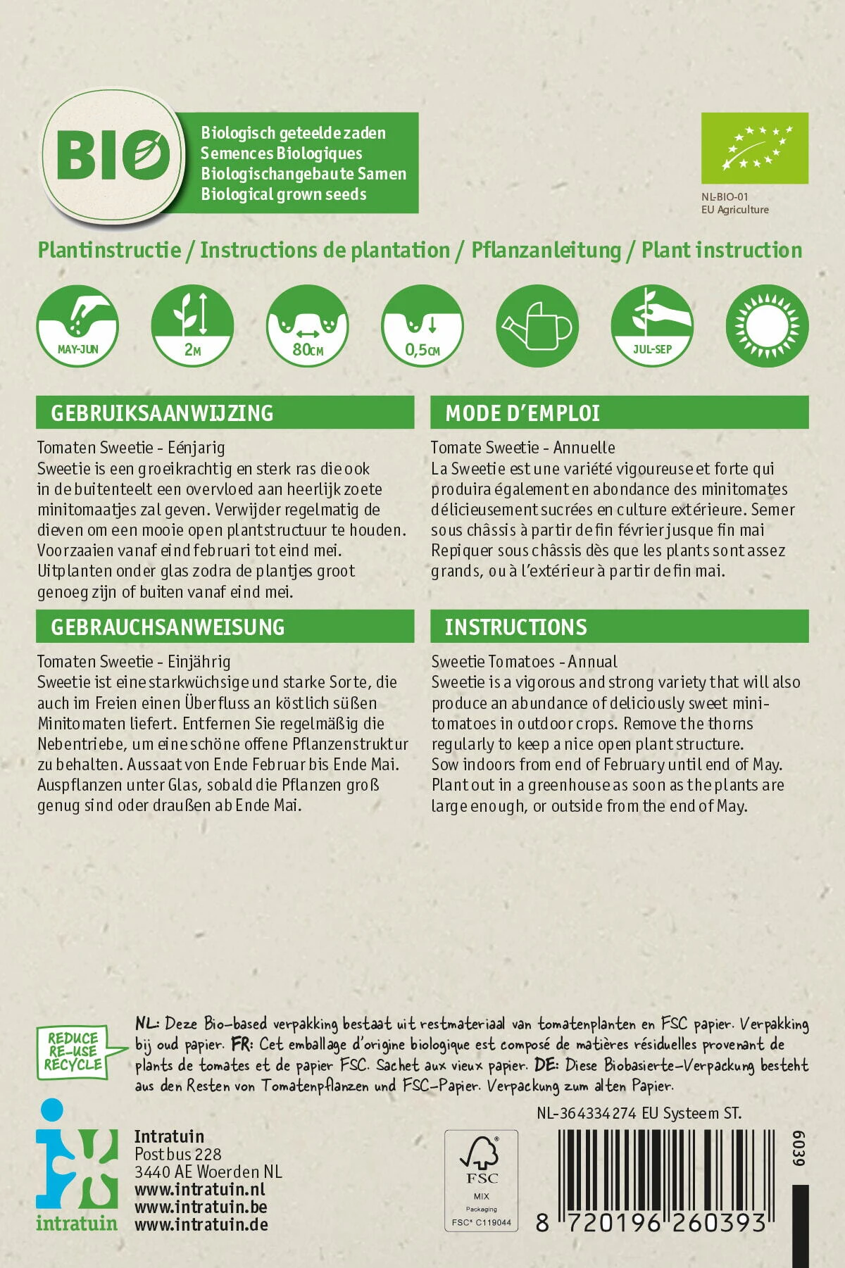 Intratuin Biologische Groentezaad Kerstomaat (Solanum Lycopersicum ‘Sweety’)