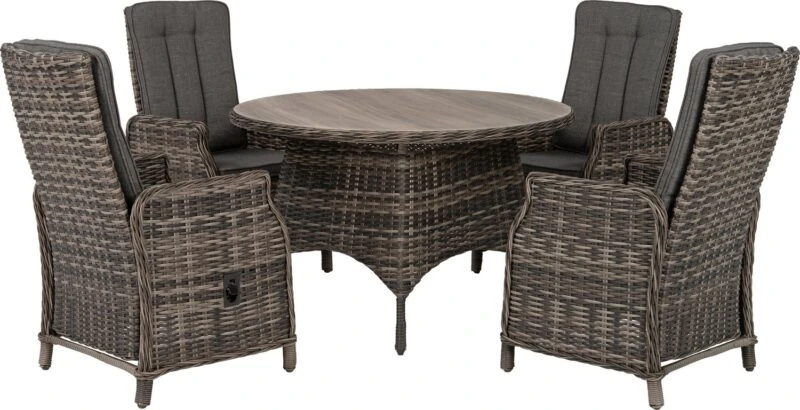 Intratuin Verstelbare 4-zits Diningset Lima Wicker Bruin / Grijs