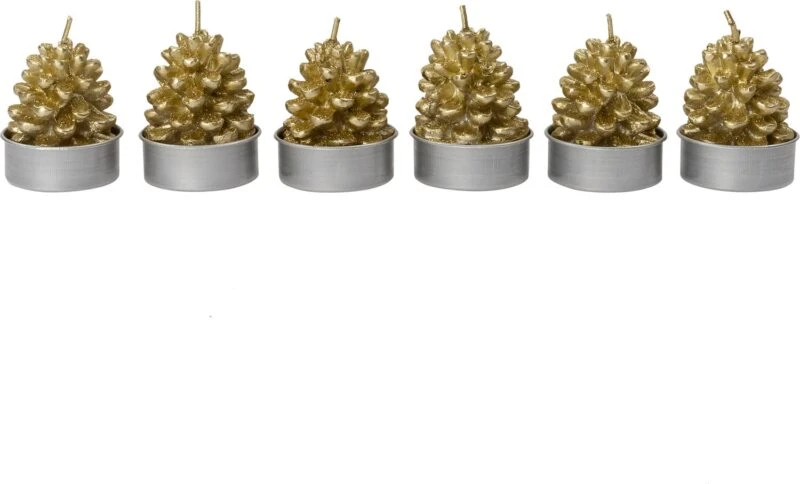 Intratuin Waxinelicht Dennenappel Goud 2 Uur 3,7 X 3,7 X 4 Cm 6 Stuks