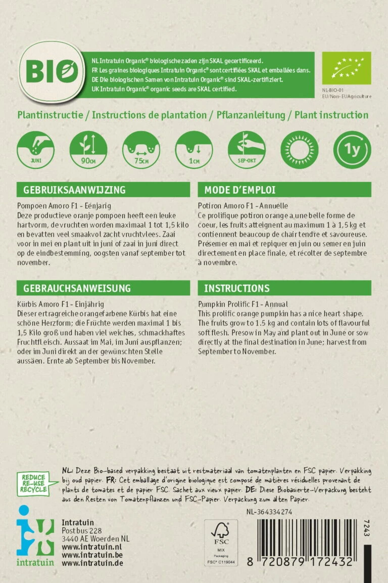 Intratuin Biologisch Groentezaden Pompoen (Cucurbita Maxima ‘Amoro F1’)