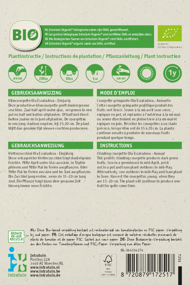 Intratuin Biologisch Groentezaden Courgette (Cucurbita Pepo ‘Olea Escaladora’)