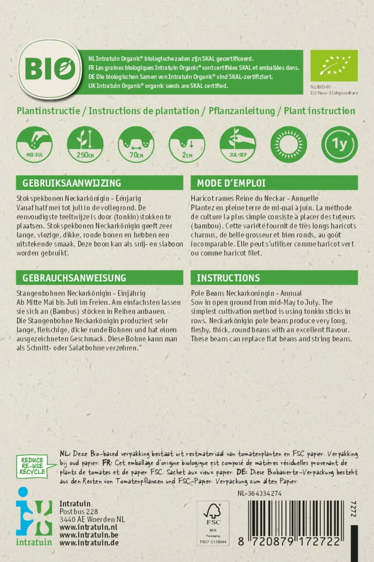 Intratuin Biologisch Groentezaden Stokspekboon (Phaseolus Vulgaris ‘Neckarkönigin’)